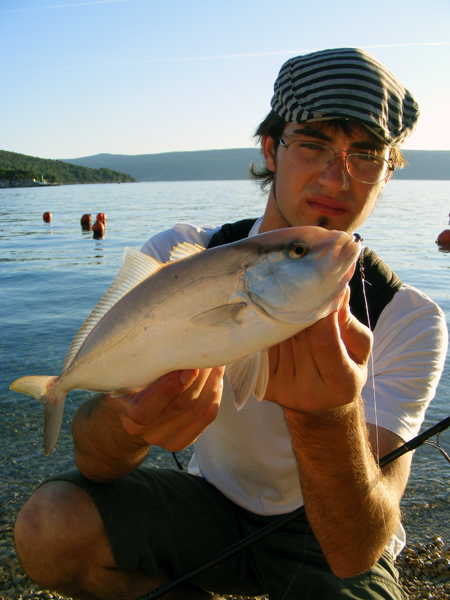 Jedva preživjevši tu torturu, uskoro jurišamo po Rijeci naoružani brdom pribora i stajemo kod kanala na izlazu iz luke, gdje ćemo čekati katamaran. Nema vremena za gubljenje pa dok Juho ide po kruh, ja slažem svoj novi ultralajt štap i bacam silikonca uz kanal kraj nekakve barke. Cim jednom, cim drugi put, i izlijeće mi brancin kilaš, promašuje silikon, iskače iz vode, promašuje ga opet, prati ga uz dno i pod nogama ga opet promašuje. K vragu! Dolazi Juho, uzima moj štap, zabacuje nekud van i kaže da je i on promašio griz. Probam ja, i kako sam zabacio tako mi nešto zvjerski udara, totalno ludi dril, i vadim malu palamidu! A tek smo došli!